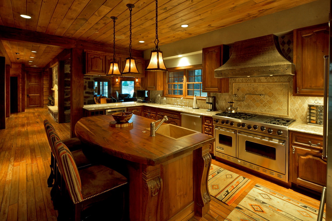 Chalet-Stil ist einer der ungewöhnlichsten Stile für eine russische Person. Er ist jedoch einer der uns am nächsten stehenden im Geiste.Dieser Stil schien uns aus den Seiten historischer Romane über Rittertaten, schöne Damen und riesige, uneinnehmbare Schlösser zu kommen. Eine Küche im Chalet-Stil ist eine Fülle von grobem, unterbearbeitetem Holz.