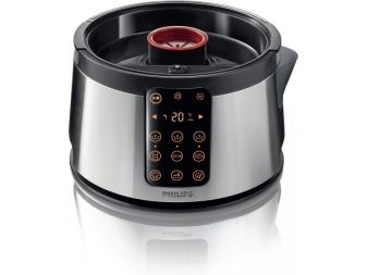 In der Verwaltung von Philips Dampfgarer keine große Sache ist, müssen Sie nur, dass die Zeichen auf den Tasten ihres Bedienfeld darstellen verstehen (Ein- / Ausschalten, Kochen Fisch, Gemüse, Huhn und so weiter).Wählen Sie den gewünschten Modus und stellen Sie einfach die Zeit ein, die für das Geschirr benötigt wird. Am Ende wird der Doppelkessel automatisch abgeschaltet.