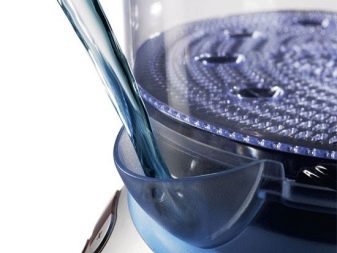 Die Körbe mit der gleichen Kapazität haben normalerweise zusätzliche Adapter - externe Wassersensoren. Es ist sehr praktisch, weil es so bequem ist, die verbleibende Wassermenge im Tank zu kontrollieren und zu verhindern, dass der Siedeprozess trocken läuft.