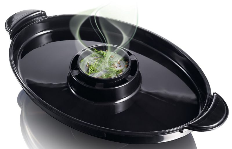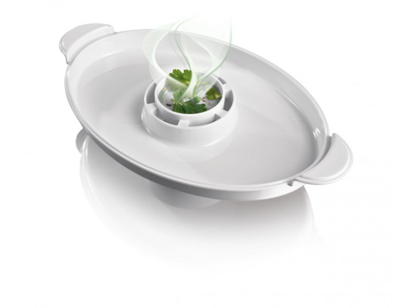 Bei diesem Modell gibt es zusätzlich einen einzigartigen Behälter, in dem Kräuter und Gewürze platziert werden können, was dem Gericht einen einzigartigen Geschmack verleiht. Sie können einfach die Gewürze hinzufügen, die Ihnen am besten schmecken, und der Dampf erledigt den Rest der Arbeit und füllt das fertige Gericht mit dem unbeschreiblichen Geschmack der Gewürze, die Sie bevorzugen.
