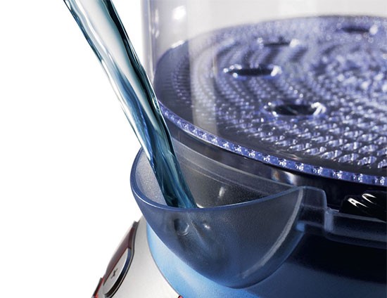 Eine weitere Komponente ist eine "Tülle", durch die Wasser gegossen wird. Dank ihm kann dies ohne das Entfernen der Körbe getan werden, was bedeutet, dass Verbrühungen sowie Verbrennungen vermieden werden können.