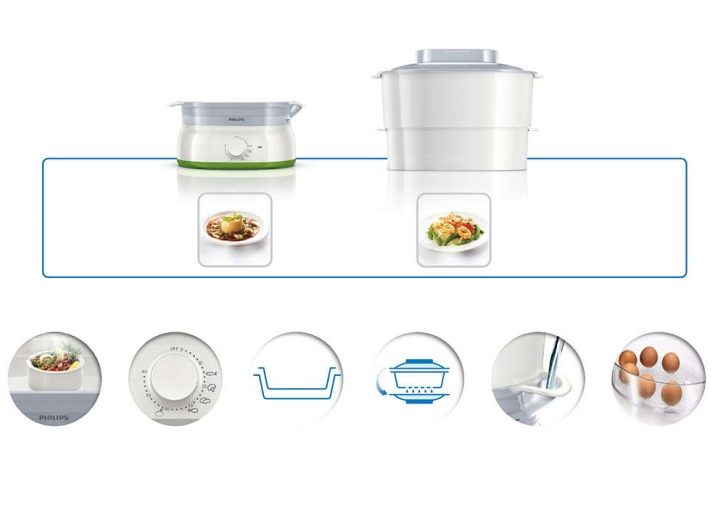 Unter allen Dampfer Philips beliebtesten Modelle - das HD 9120 und HD 9140. In jeder - drei Dampfkörbe und die gleiche Leistung Leistung. Und für den Preis sind sie sehr demokratisch.