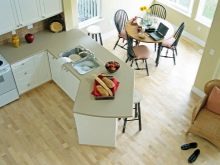 Dies ist eine gute Option für die Küche, wenn es zu einer hohen Haltbarkeit gehört. Für diesen Raum ist es besser, Modelle von mindestens 31 Klassen zu kaufen. Sie sind von mechanischen Einwirkungen gut verträglich und werden seit vielen Jahren nicht mehr ausgelöscht. Äußerlich kann es natürliches Holz völlig nachahmen. Darüber hinaus gibt es Optionen für Fliesen, Marmor, Naturstein. Laminat resistent gegen Feuchtigkeit.