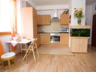 In modernen Küchen stehen viele bei der Auswahl der Böden vor der Wahl: eine einfachere und bequemere Beschichtung zu wählen, die praktisch zu verwenden ist, oder eine interessantere dekorative Beschichtung auszuwählen, die eine ästhetische Rolle spielt. Aber Experten empfehlen, von dem weiterzugehen, was Sie bereits haben.