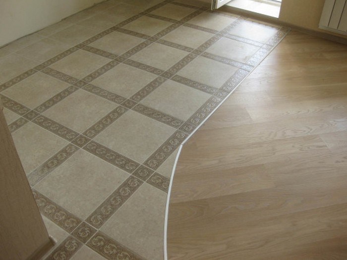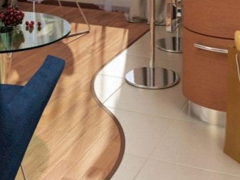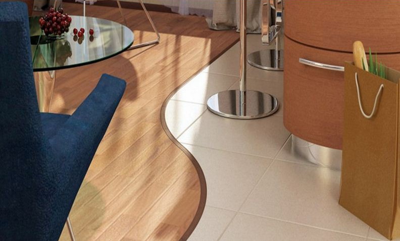 Aber wenn man es kombiniert, ist es wichtig, darüber nachzudenken Regeln für die Kombination von Bodenbelägen. In der Regel werden sie nach ihrer Farbe ausgewählt.Es ist besser, dass die Textur der Beschichtungen in beiden Zonen gleich ist, die Farbtöne gehören zum selben Farbschema. Außerdem können nicht alle Beschichtungen einfach miteinander kombiniert werden.