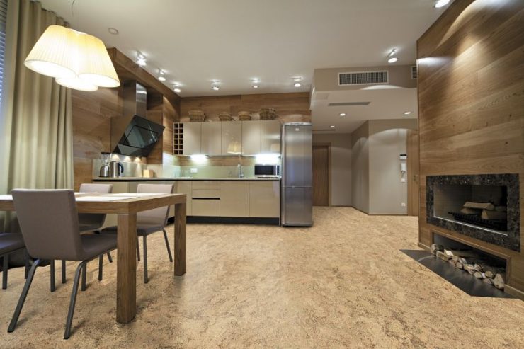 Solche Böden gehören heute zu den beliebtesten. Obwohl ihre Kosten ziemlich groß sind, haben sie doch einige Vorteile. Dies ist also eine der wärmsten Beschichtungen, die für die Küche geeignet ist. Es ist schön, barfuß auf einem solchen Boden zu gehen. Kork hübsch umweltfreundlich. Naturkork quillt nicht aus Wasser und gibt nicht zu verrotten. Außerdem ist es leicht, jeden Schmutz zu entfernen, sogar mit Schleifmitteln.