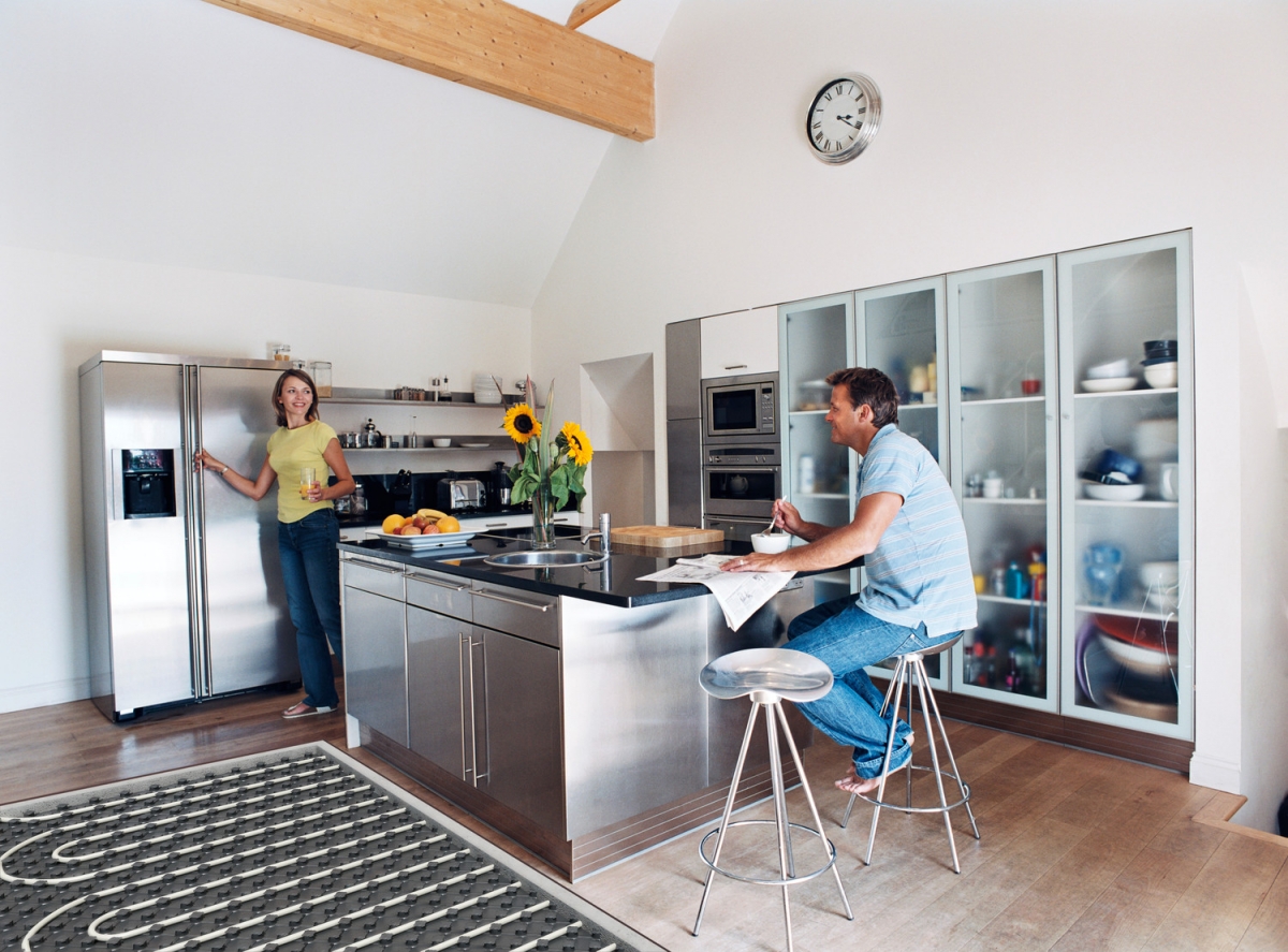 Ein zusätzliches Training sollte durchgeführt werden, wenn Sie eine Fußbodenheizung machen möchten. Eine solche Beschichtung muss eine hohe Wärmeleitfähigkeit aufweisen.Außerdem sollte der Küchenboden nicht nur alle wichtigen Qualitätsmerkmale aufweisen, sondern auch mit dem Stil des Interieurs kombiniert werden.