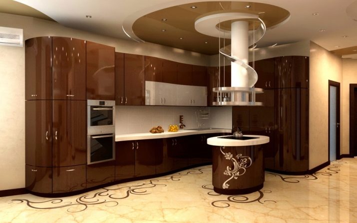 Es wird angenommen, dass in der Küche, besonders wenn sie mit dem Wohnzimmer verbunden sind, Haushalte am meisten Zeit haben. Deshalb sollte die Küche innen gut und hochwertig sein, um es gemütlicher und gemütlicher zu machen. Eine große Rolle bei der Gewährleistung von Komfort und Sicherheit spielt der Bodenbelag.