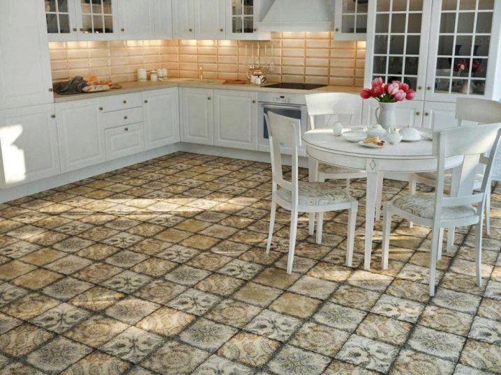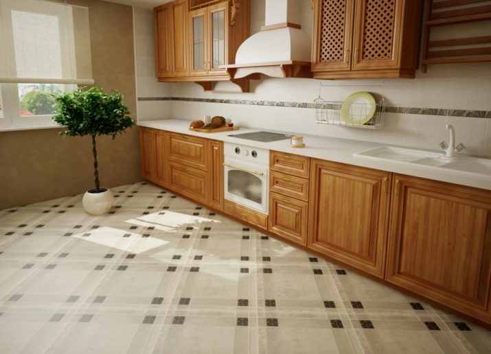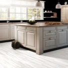 Keramikfliesen eignen sich auch zum Abdecken von Küchenböden. Wie Laminat ist es gut, dass es jede Art von Beschichtung imitieren kann. Keramikfliesen können sowohl glänzend als auch matt sein.Matte Beschichtungen schützen in der Regel mit einer zusätzlichen Beschichtung, die es ihnen ermöglicht, ihren edlen Farbton lange zu bewahren.
