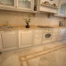 Selbstnivellierende Böden sind auch gut für die Küche. Aber solche Abdeckung wird ziemlich selten verwendet. Seine Hauptvorteile schließen Stärke und Hygiene ein. Fußböden dieser Art können einmal verlegt werden und Reparaturen für mehrere Jahre vergessen.