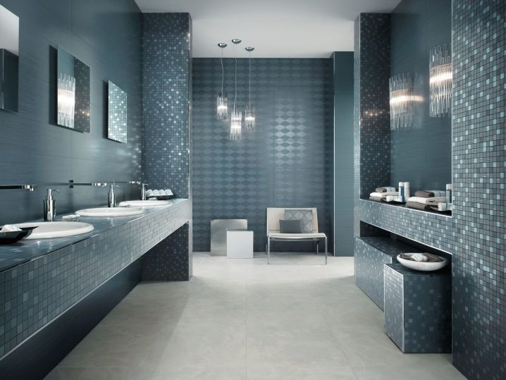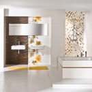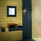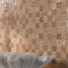 Mosaikfliesen sind am einfachsten zu installieren. Es besteht aus kleinen Teilen, die auf ein Gitter oder Papier geklebt sind. Zum Verlegen genügt es, den Untergrund vorzubereiten, die gewünschte Form der Fliese zuzuschneiden und auf den Fliesenkleber zu kleben.