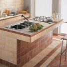 Toskanische Cotto-Fliesen werden ausschließlich für Design, nicht für Design-Lösungen verwendet. Es wird durch Extrusion aus Ton hergestellt, ist nicht emailliert, hat eine geringe Dicke (nicht mehr als 3 mm) und eine sehr poröse Struktur. Infolgedessen toleriert die Porosität keine Feuchtigkeit und Orte mit hoher Verschmutzung. Aber die Fliese Cottaforte - in größerem Maße für den Boden geeignet. Es ist bereits mit Glasur bedeckt und hat alle notwendigen Eigenschaften des Bodenbelags für die Küche.