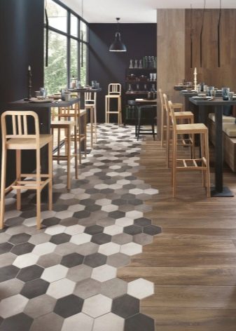 Was die Farbe betrifft, ist die beste Option, um die optische Harmonie des Raums zu erreichen, die Farbe der Fliese, die um ein paar Töne heller ist als der gesamte Innenraum. Je dunkler die Fliese ist, desto mehr zieht sie das Auge an und desto mehr Staub und Kratzer sind sichtbar. Je heller die Fliese, desto besser sichtbar die Flecken und Sand.