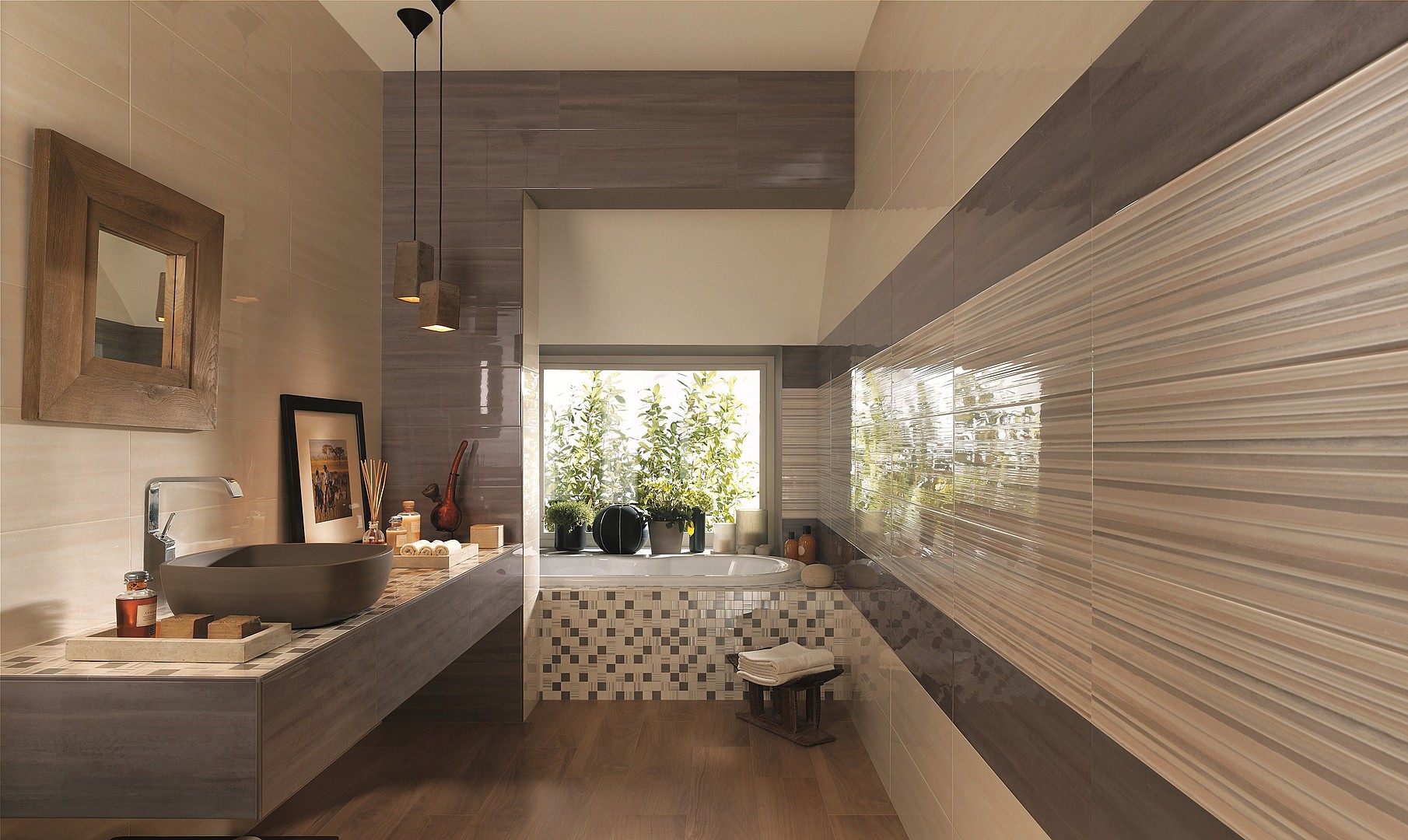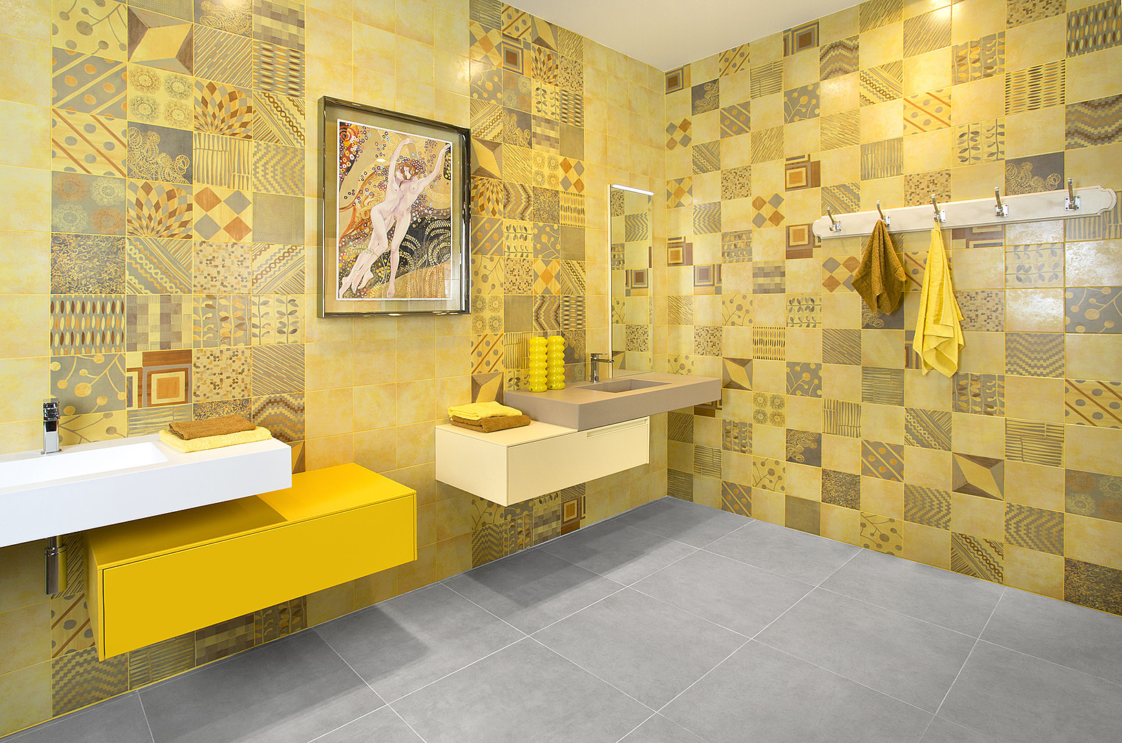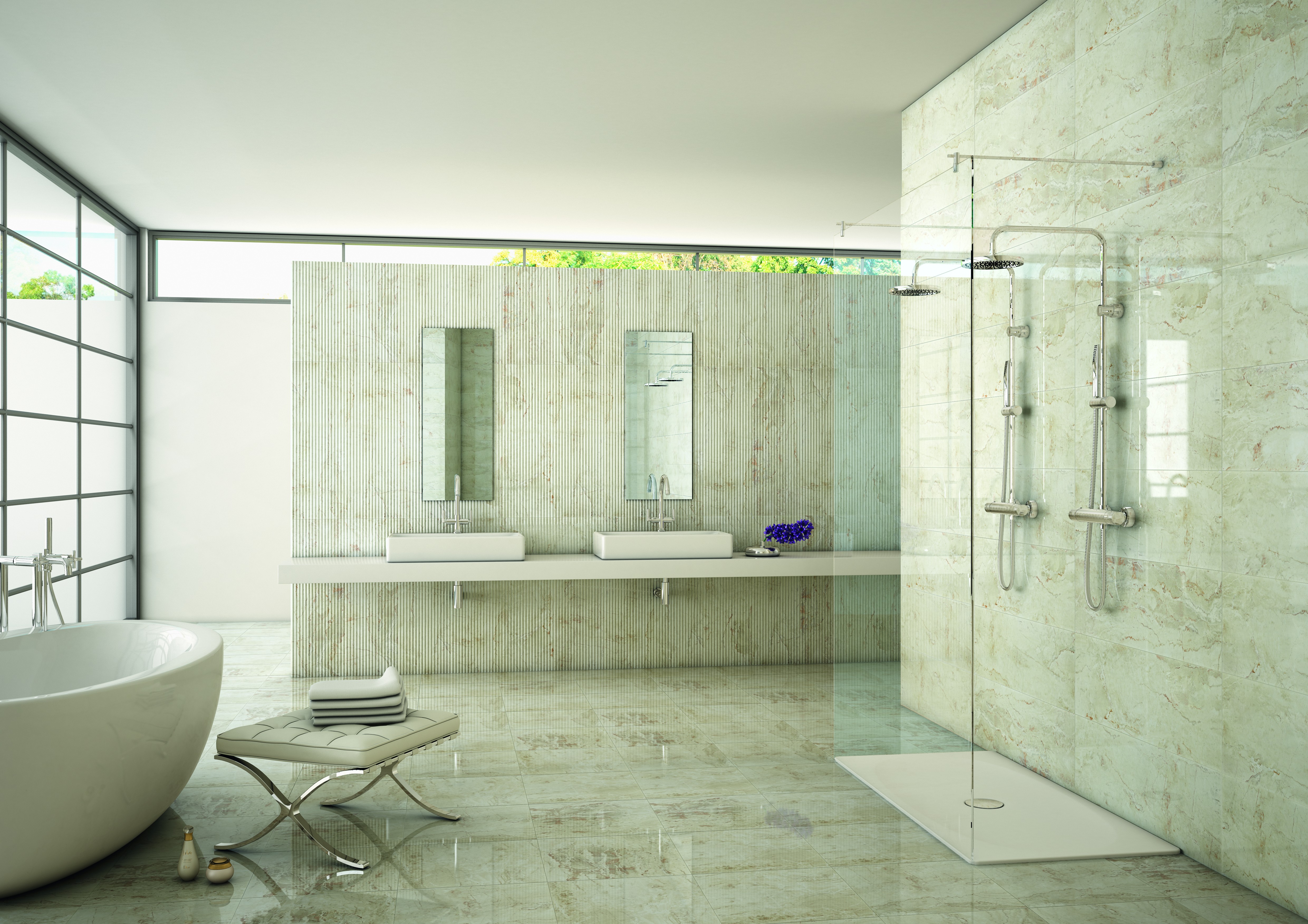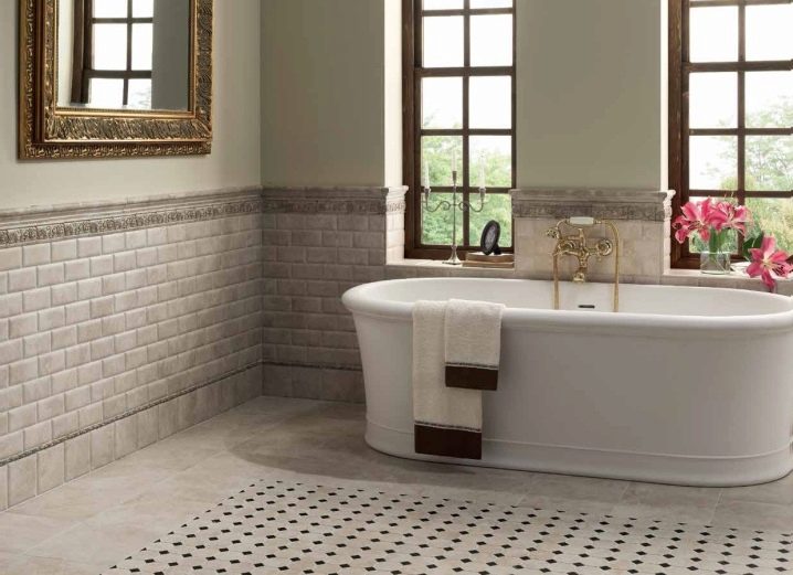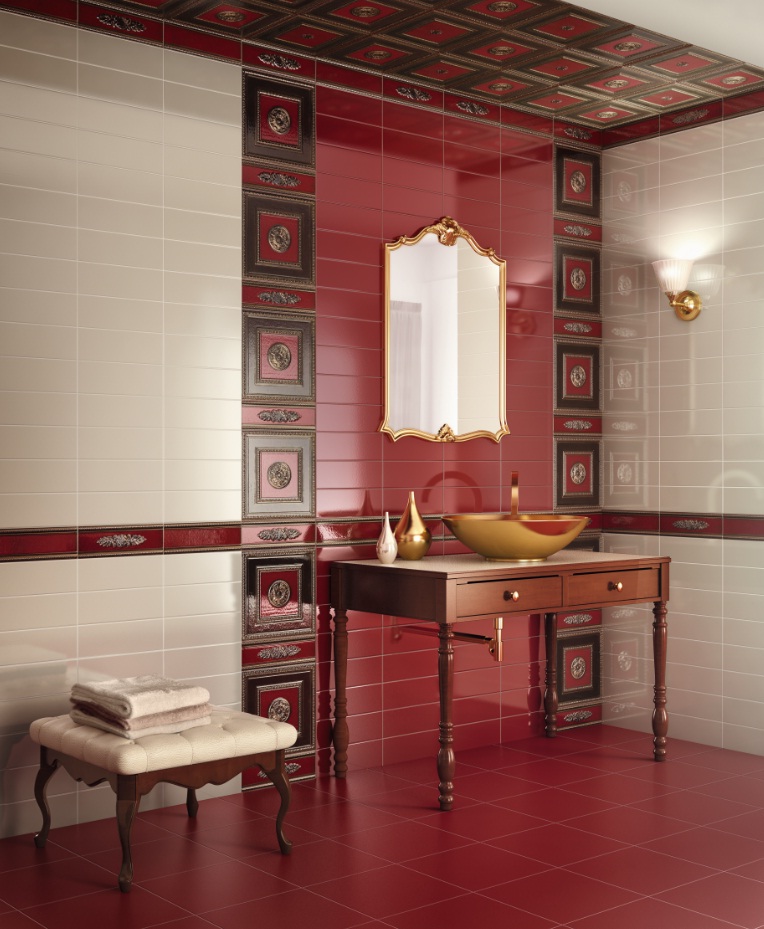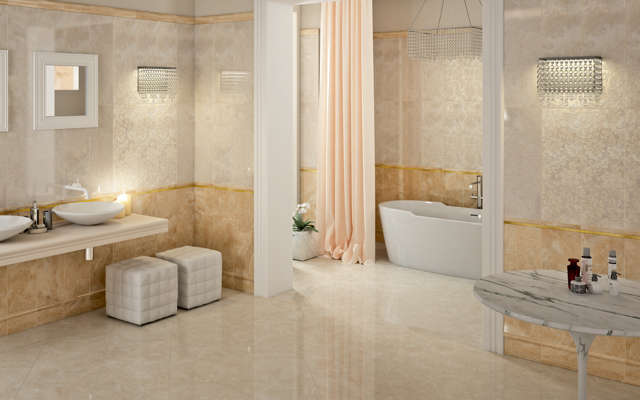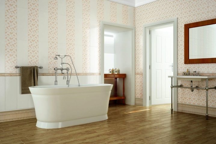 Die Fliese erster Klasse ist für Räume mit wenig Verkehr bestimmt, bei denen die Bewegung ohne Schuhe oder in weichen Schuhen ausgeführt wird - Badezimmer, Schlafzimmer.