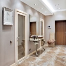 Dies ist auf solche Qualitäten von Feinsteinzeug wie Wasserbeständigkeit, Verschleißfestigkeit, Beständigkeit gegen verschiedene Schäden und die Auswirkungen von Chemikalien zurückzuführen. Feinsteinzeug ist ideal für die Rektifizierung, mit der Sie die Wand praktisch ohne Nähte furnieren können, wodurch das Aussehen einer monolithischen Platte entsteht.Und das ist nicht nur schön, sondern auch praktisch, denn die Pflege eines solchen Vorfeldes wird nicht schwierig sein.