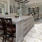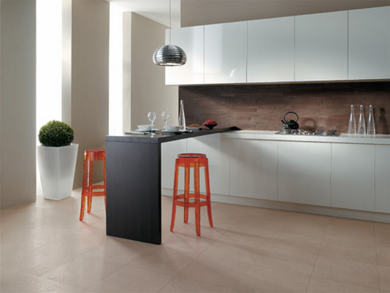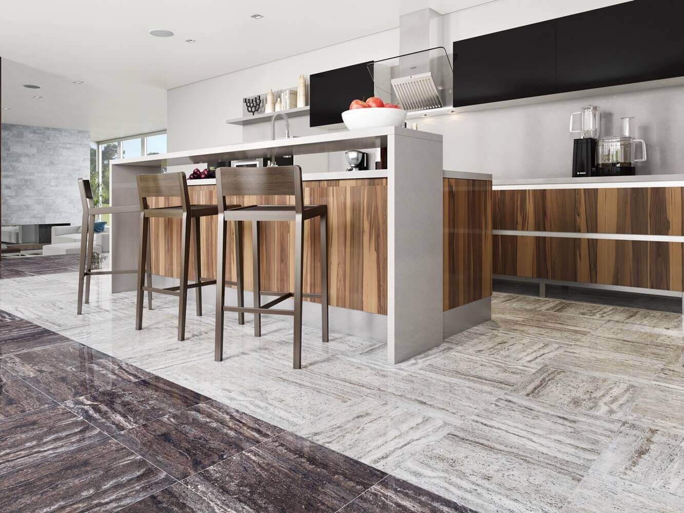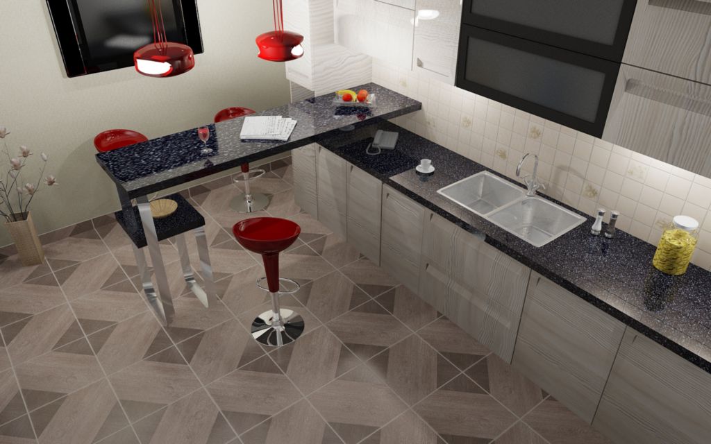 - Um die Decken höher und die Küche breiter zu machen, sollten Sie die ursprüngliche Methode der Feinsteinzeugverlegung wählen.