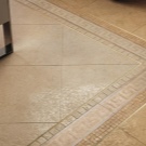 - Keramische Granitfliesen werden anstelle von Sockelleisten verlegt.