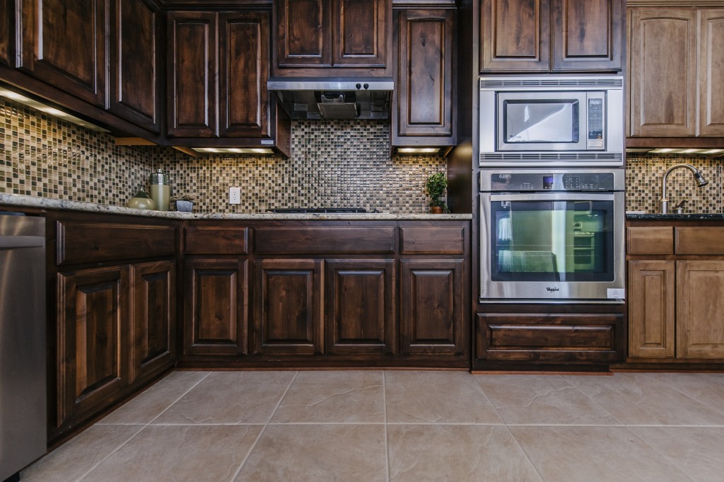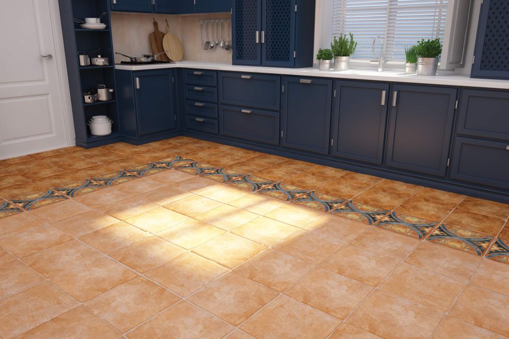 Alle offenen Bereiche der Küche müssen mit ganzen Fliesen belegt werden. Die geschnittenen Fliesen werden an Stellen verlegt, an denen sie nicht sichtbar sind.