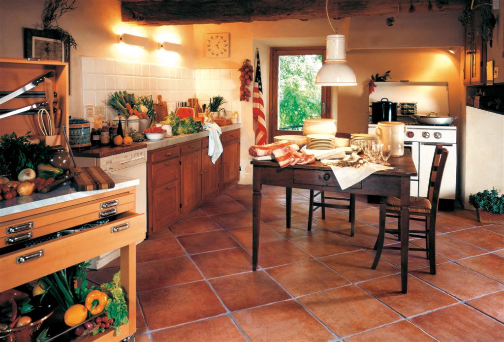 Empfehlen Sie nicht für Küche und Korridor poliertes oder glasiertes Steingut. Es ist ziemlich rutschig, die Glasur verschwindet im Laufe der Zeit, Sandkörner und andere Rückstände können Kratzer hinterlassen.