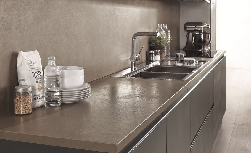 Moderne Designideen werden auch in der Verblendung von Feinsteinzeug auch auf einer Arbeitsplatte in der Küche verkörpert.