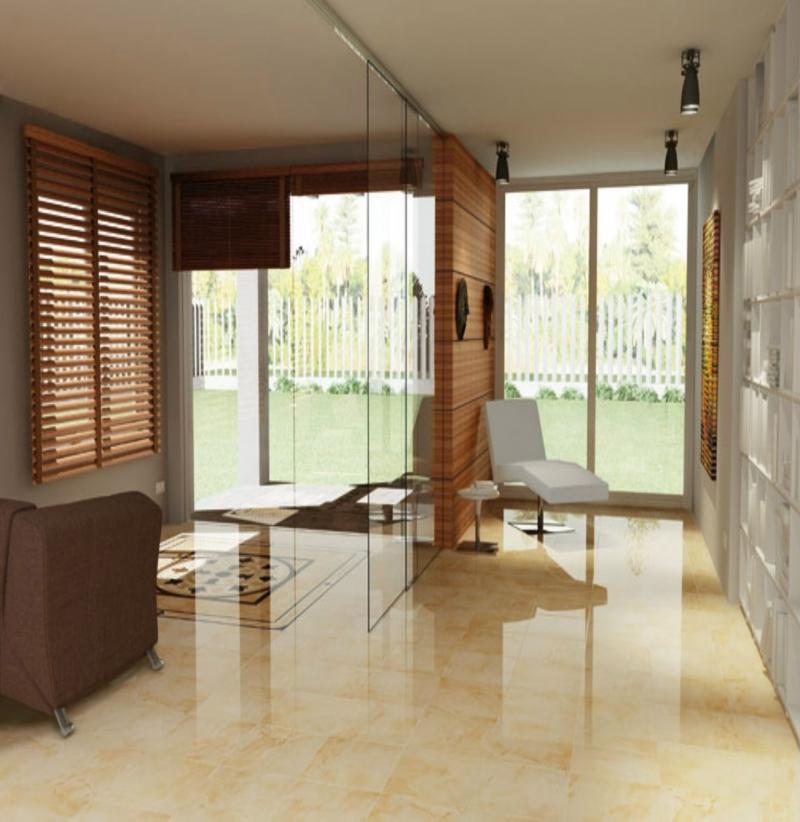 - Satiniert (poliert) hat eine glänzende Oberfläche und alle Eigenschaften von Feinsteinzeug intakt, weil Die Zusammensetzung, die der Fliese Glanz verleiht, wird vor dem Brand aufgetragen.