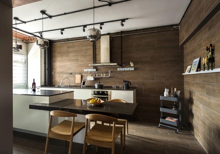 Heute bietet der Markt eine große Auswahl an Feinsteinzeugfliesen, nicht nur einfarbig, sondern imitiert natürliche Materialien wie Stein, Leder, Marmor. Mögliche Stilisierung von Holz oder Parkett. Diese Fliese wird definitiv dazu beitragen, der Küche eine Persönlichkeit zu geben.