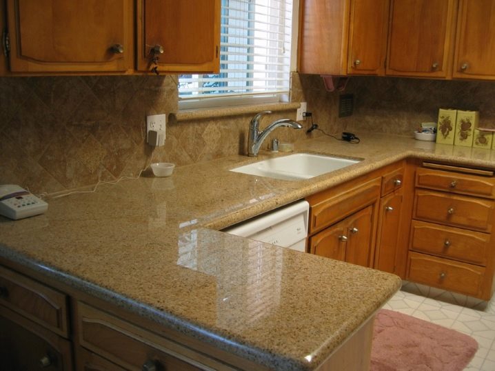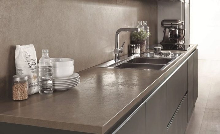 Solch eine Arbeitsplatte hat keine Angst vor Kratzern, Rissen, Chips. Es wird keine Dellen oder Schnitte erscheinen. Eine Tischplatte aus Feinsteinzeug nimmt kein Wasser auf und Fett, Farbstoffe und andere Schädlinge von Küchenmöbeln verschwinden nach der Reinigung leicht. Eine mit Feinsteinzeug ausgekleidete Tischplatte hält Wärmetropfen stand.
