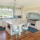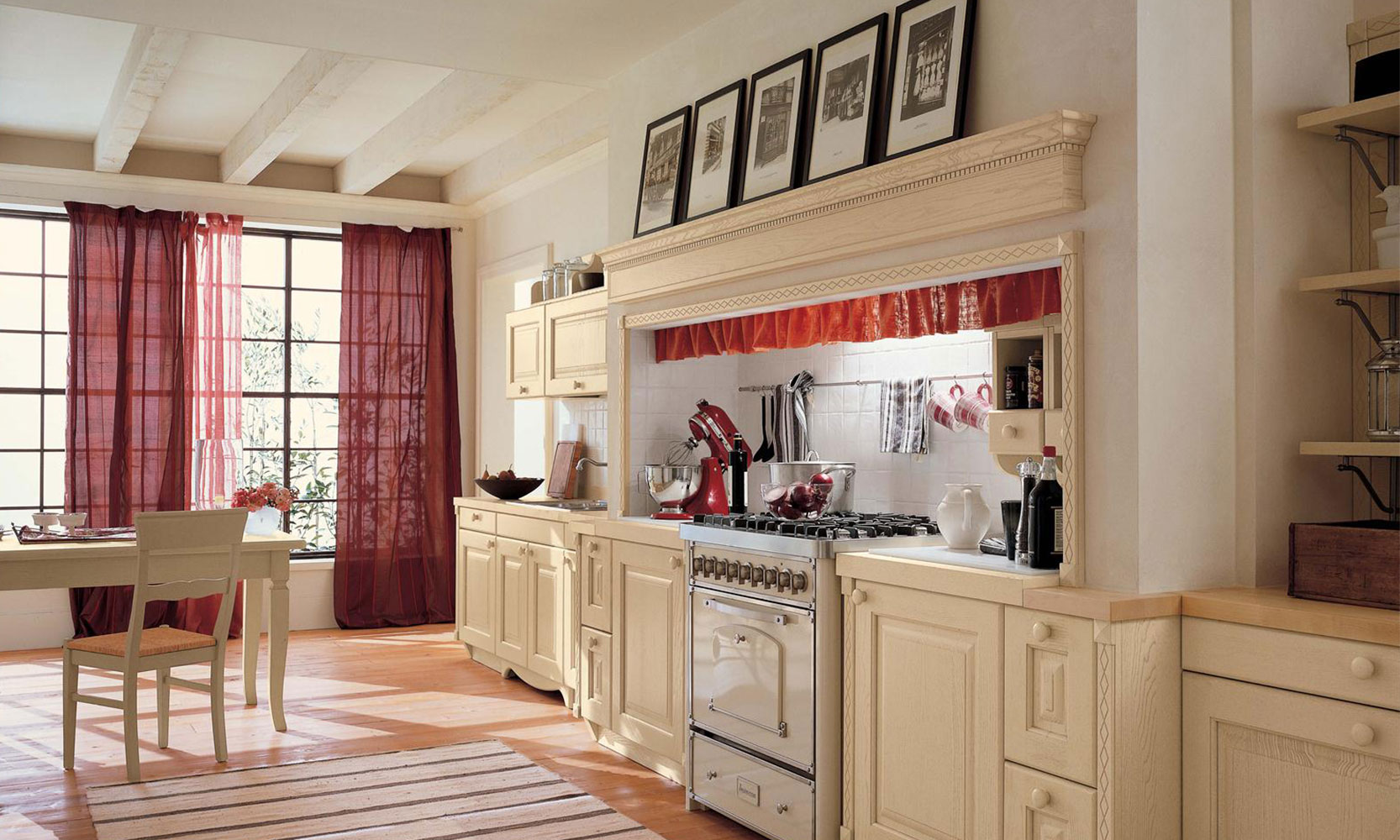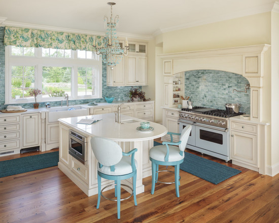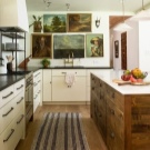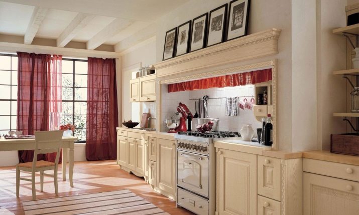 Küche im Stil des Landes oder der Provence ist ohne gemütliche Teppiche schwer vorstellbar. Es kann mehrere von ihnen geben, die in verschiedenen Farben hergestellt werden, aber notwendigerweise miteinander kombiniert werden und zusammen eine einzigartige heimische Atmosphäre schaffen.