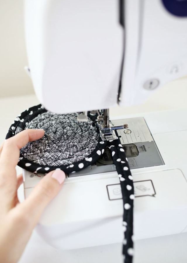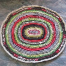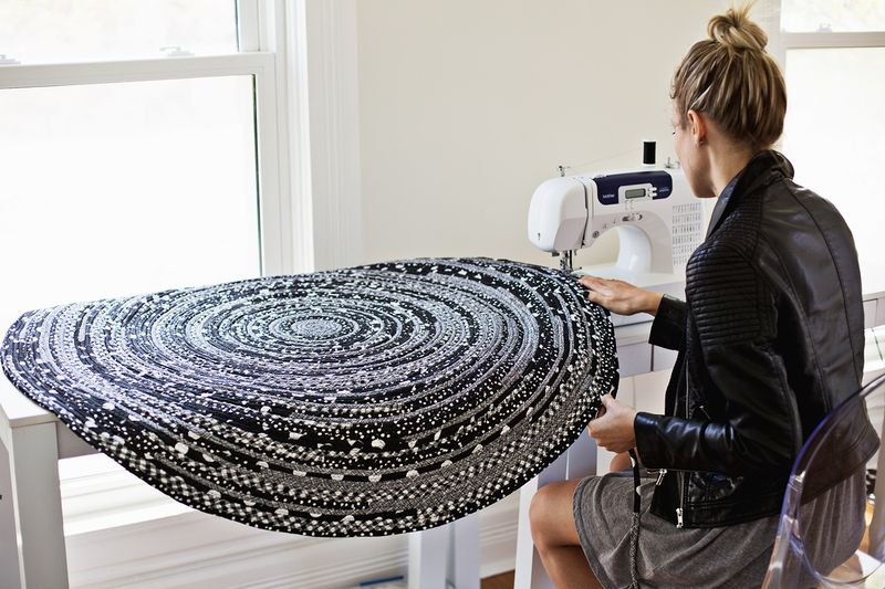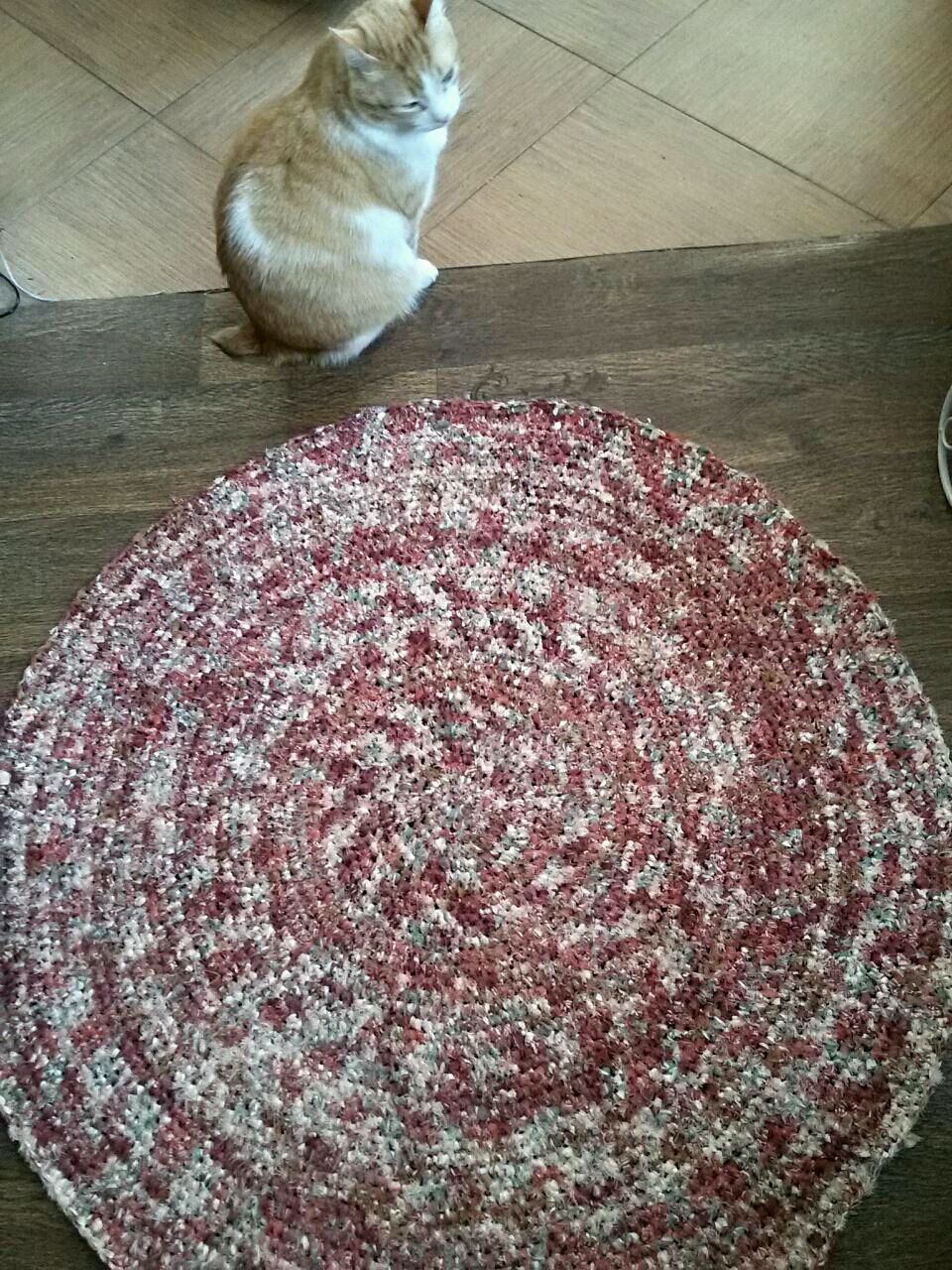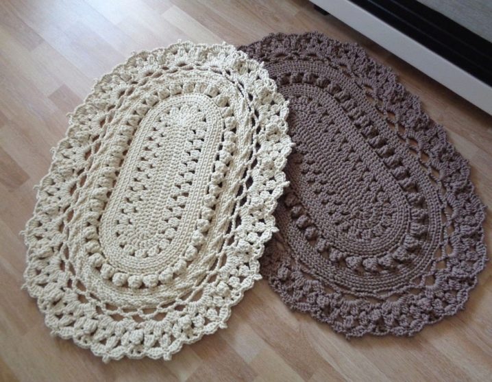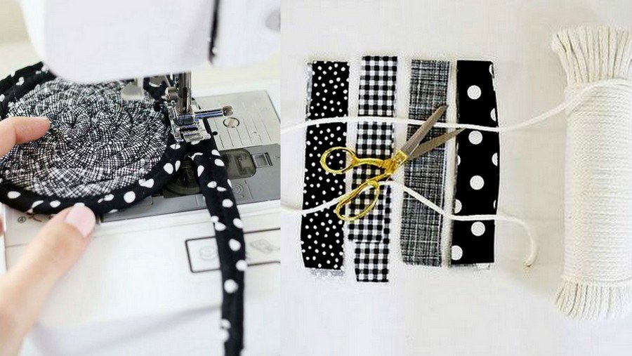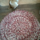 Außerdem kann die Matte gewebt werden. Um dies zu tun, weben Sie einen langen Zopf aus Stoffbändern, und dann wird dieser Zopf in einer Spirale gefaltet und genäht.