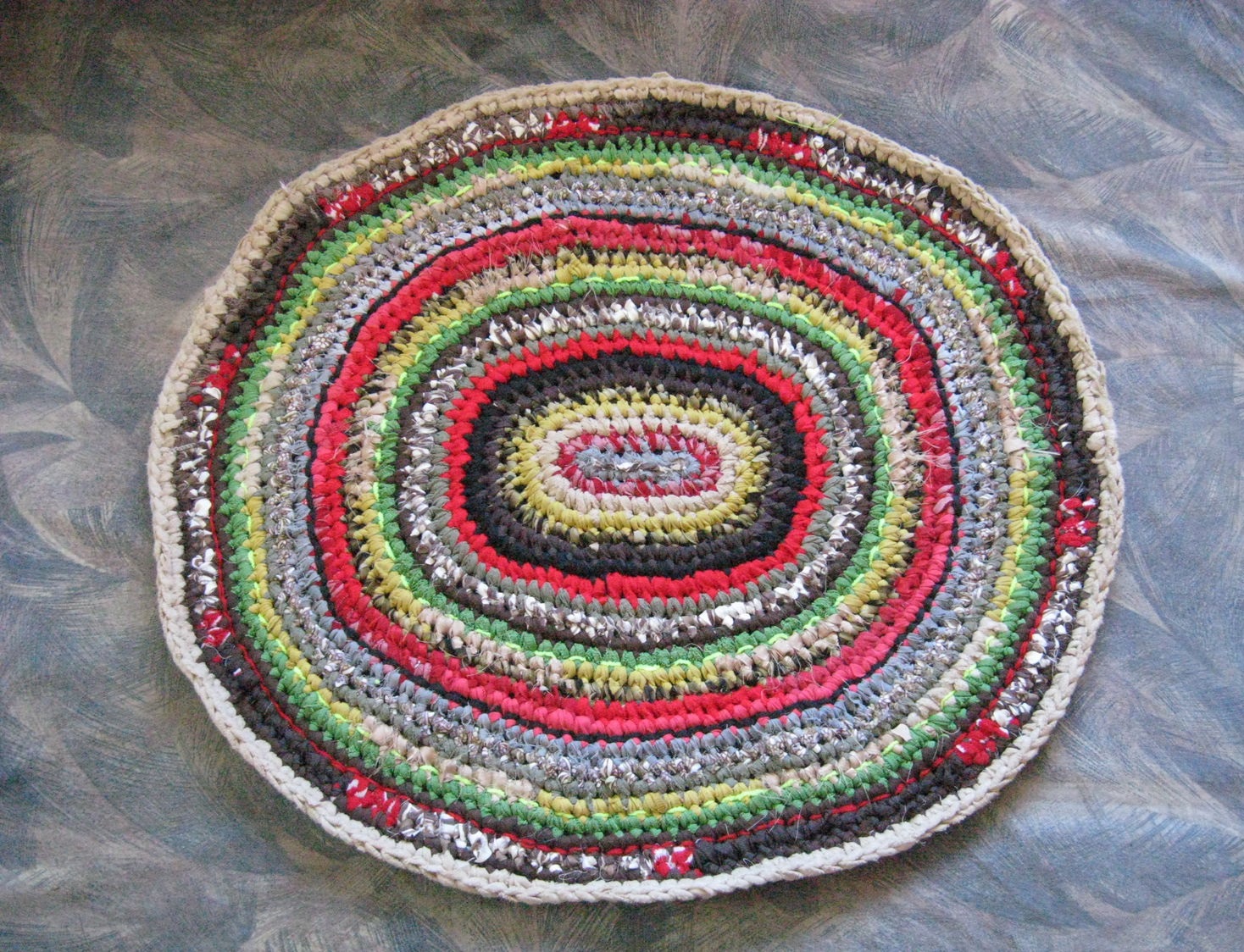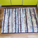 Auf Wunsch können Sie nicht aus Garn oder Gewebebändern stricken, sondern nach dem gleichen Prinzip in Plastiktüten schneiden. Dieser originelle Teppich ist perfekt für den Arbeitsbereich.