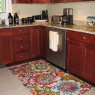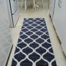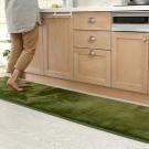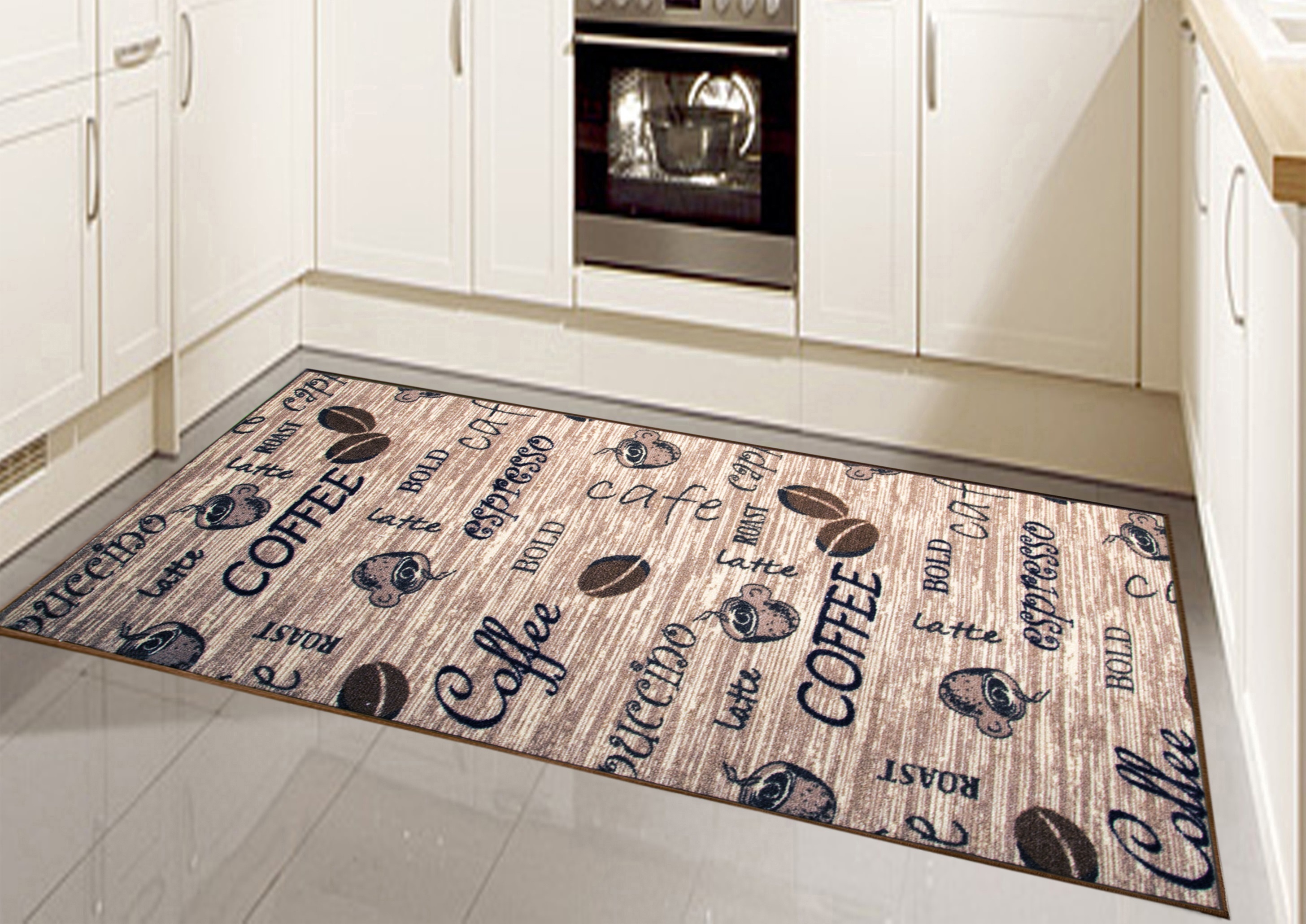 Besonderes Augenmerk sollte auf die Textur des Teppichs gelegt werden. Ein zu zotteliger oder dicker Teppich mit grober Webung wird in der Küche nicht funktionieren, da es sehr schwierig ist, sie zu reinigen, und es ist unmöglich, verschütteten Zucker oder Salz vollständig zu sammeln, sogar mit einem Staubsauger.