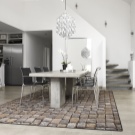 - Nach dem gleichen Prinzip sollte die Form eines Teppichs und eines Tisches kombiniert werden.Ein rechteckiger Teppich eignet sich gut für einen rechteckigen oder ovalen Tisch, einen quadratischen für einen quadratischen oder einen runden Tisch und einen runden für einen runden.