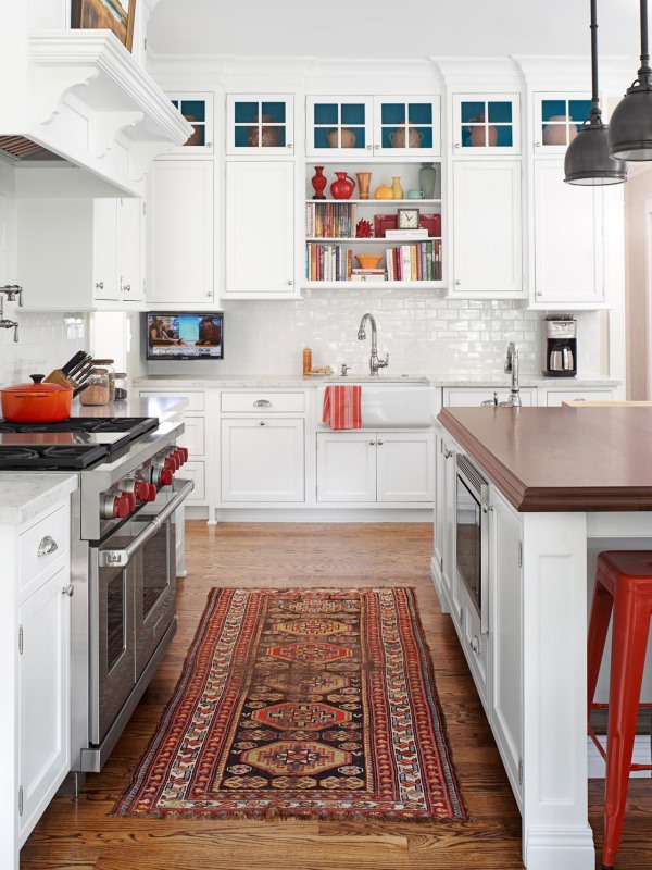 Nichtsdestotrotz hat der Teppich in der Küche seine Vorteile, der erste ist die Wärmedämmung. Typischerweise ist der Küchenboden gefliest oder Feinsteinzeug. Das sind kalte Materialien, und außerdem ist es sehr gefährlich, auf sie zu fallen.