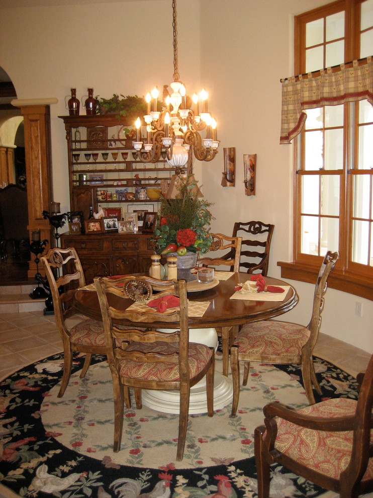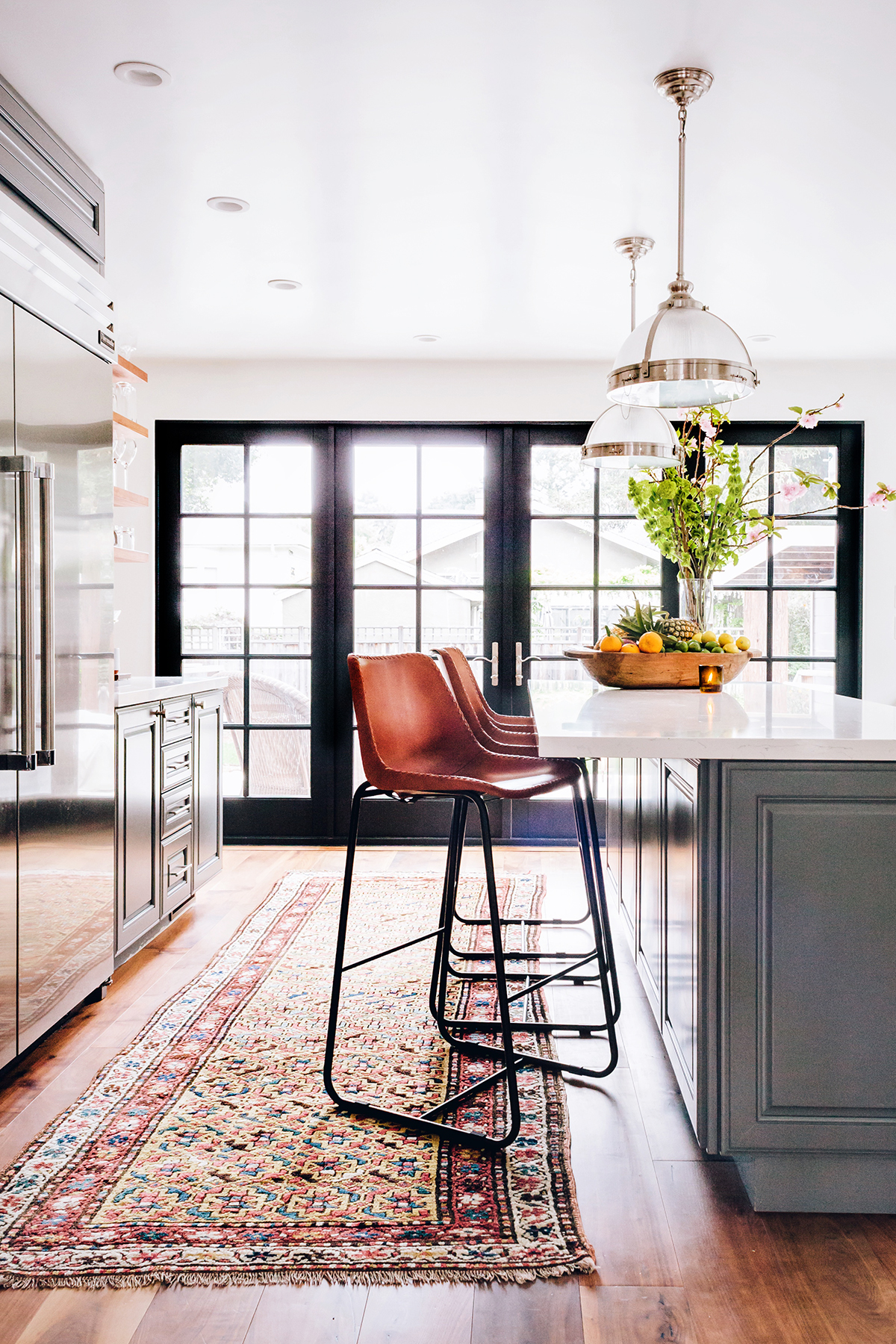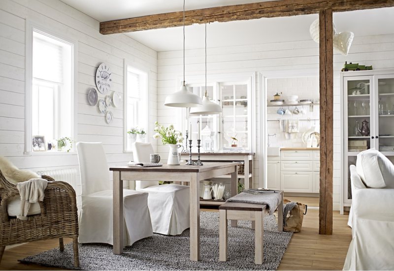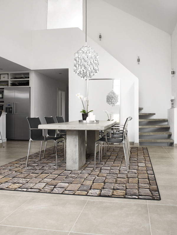 Ein kleiner Teppich im Essbereich lässt die Füße während des Essens nicht einfrieren und gibt ein Gefühl von Wärme und Komfort.