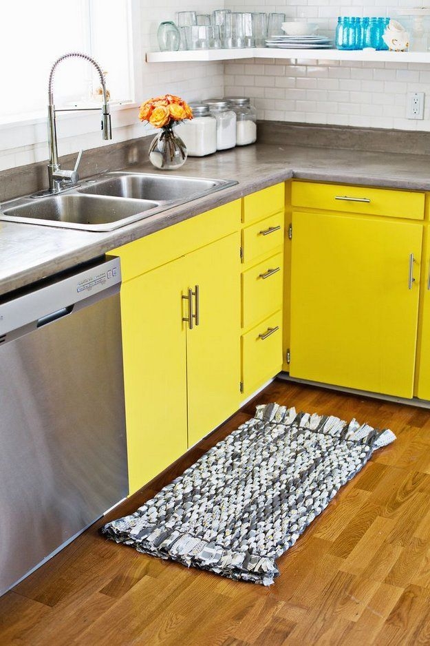 Sie können mit Ihren eigenen Händen einen schönen Küchenteppich schaffen. Am einfachsten ist es, eine Matte aus sehr dickem Garn zu häkeln. Anstelle von Garn können Sie alte Strickwaren verwenden, die in Streifen von 3-5 cm Breite geschnitten werden. Der Teppich ist ziemlich dick und warm.
