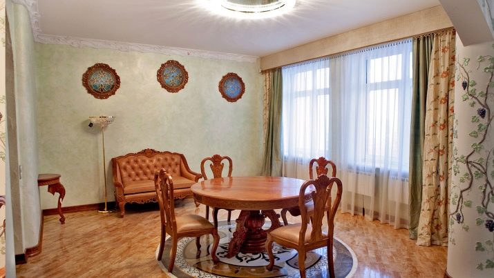 - Teppich ist der Hauptteil des Dekors, also ist es besser, es vor dem Kauf von Gardinen und dekorativen Accessoires zu kaufen.