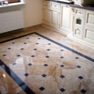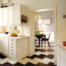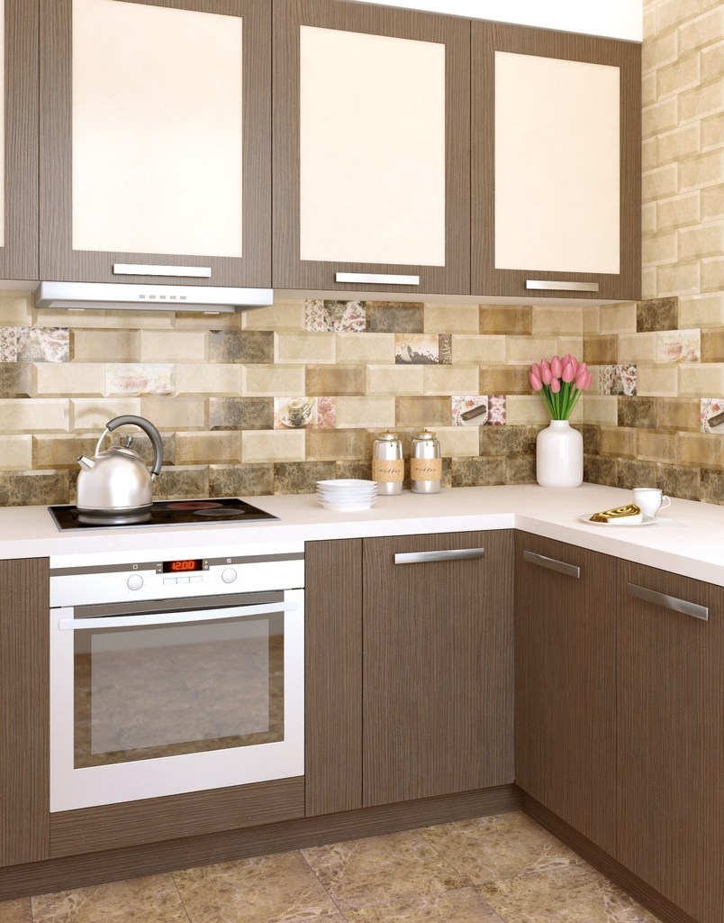 - Wenn der Boden im Küchenraum Unregelmäßigkeiten aufweist und nicht entfernt werden kann, ist es in diesem Fall notwendig, Fliesen mit der kleinsten Größe zu kaufen. Zum Beispiel 10 zu 10 oder 15 zu 15. So wird eine kleine Kachel alle Fehler verbergen und es wird keine Lücken darunter geben.