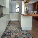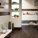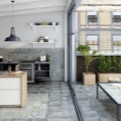 - Der Bodenbelag in der Küche gilt als am tragbarsten, deshalb sollten Sie bei der Auswahl einer Fliese auf die Klassifizierung achten. Also, für einen solchen Raum ist ideal für die dritte Härtegrad nach PEI oder fünfte Klasse nach GOST. Auch bei einzelnen Firmen auf der Verpackung finden Sie ein Badge mit einem schraffierten Bein, das die höchste Verschleißfestigkeit anzeigt.