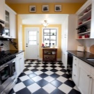 - Es ist notwendig, die Größe der Keramikfliesen so zu wählen, dass sie ein Vielfaches der Breite und Länge der Küche ist. In diesem Fall wird das Verlegen um ein Vielfaches billiger, einfacher und muss das Material nicht schneiden.