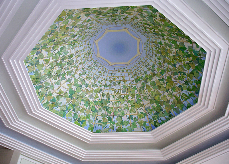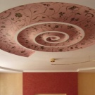 In der kommenden Saison werden Designs mit gedrucktem Film relevant sein. Ein solches Deckenmeisterwerk ist eine künstlerische Idee, die mit einem Bild in einem Rahmen verbunden ist. Platzieren Sie ein 3D-Bild des Himmels oder Raumes über Ihrem Kopf - Sie werden sofort spüren, wie sich Ihre Stimmung im Haus verändert. Viele sind verlegen oder haben Angst davor, eine solche Idee zu verkörpern, weil sie glauben, dass sich ihre Wohnung in eine Kathedrale, eine Kirche oder einen Tempel "verwandeln" wird. Mit einem kompetenten Ansatz können Sie ein atemberaubendes Ergebnis erzielen, das die meisten begeisterten Komplimente der Gäste verdient.