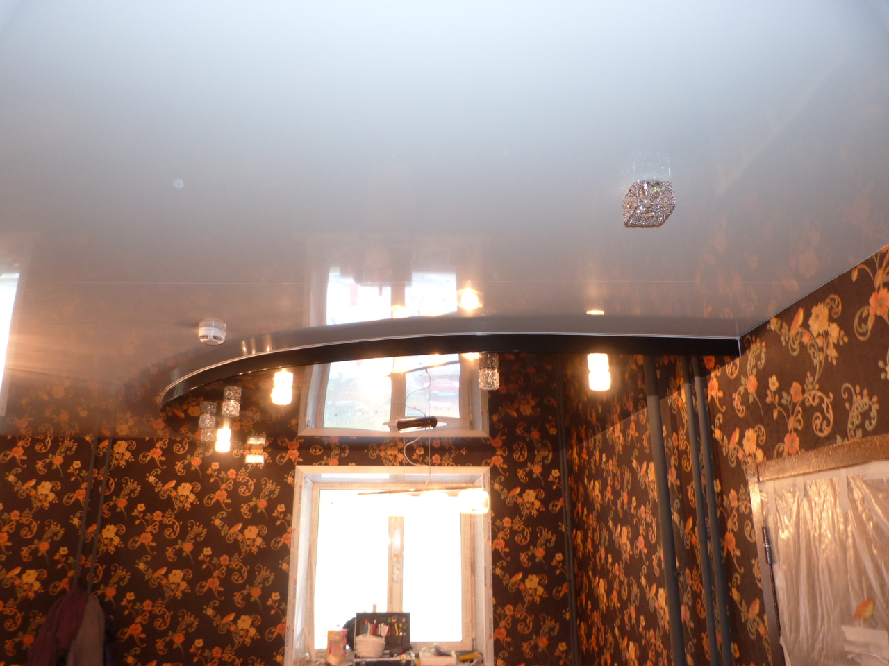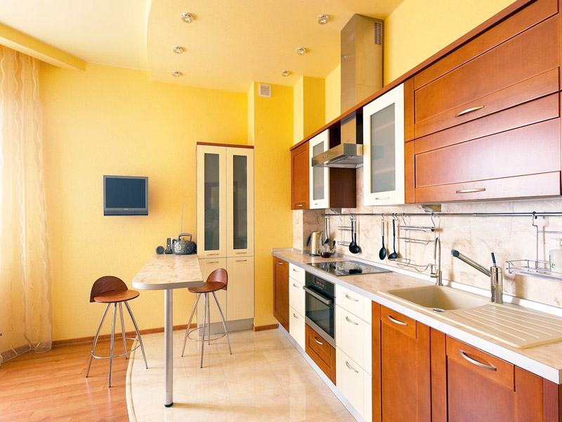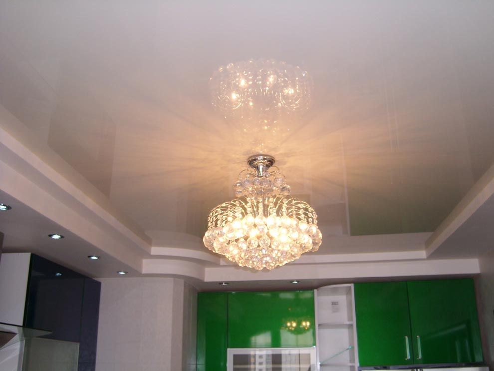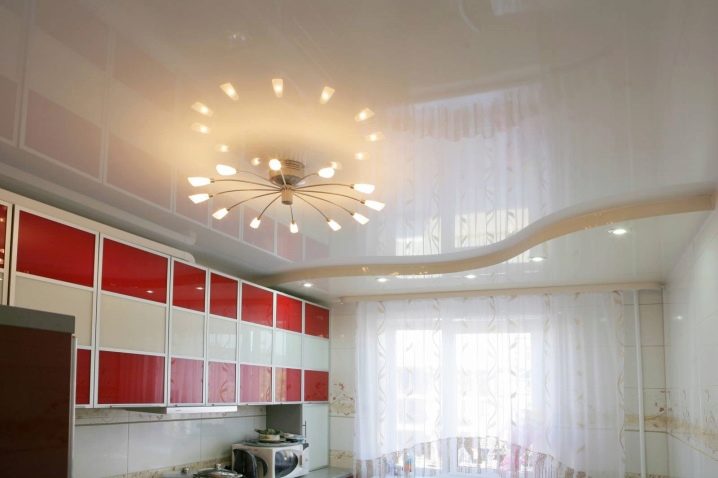 Das Material selbst ist nicht so teuer wie seine Installation, sparen Sie also bei der Installation einer Spanndecke. Moderne Technologien ermöglichen es uns, die Leinwand nicht nur stilvoll zu gestalten, sondern auch an Ihre "kulinarischen Experimente" anzupassen. Eine solche zweistöckige Decke kann den Bedingungen hoher Feuchtigkeit, Temperaturabfällen, Verbrennungen, Dämpfen usw. standhalten. Eine weitere Möglichkeit, die Kosten für Reparatur- und Veredelungsarbeiten zu reduzieren, ist ein mehrschichtiges System aus PVC-Folie oder Leinwand, das mit einem Tuch bedeckt ist.