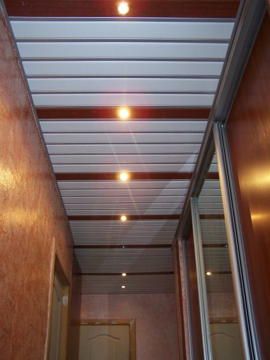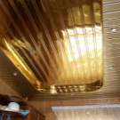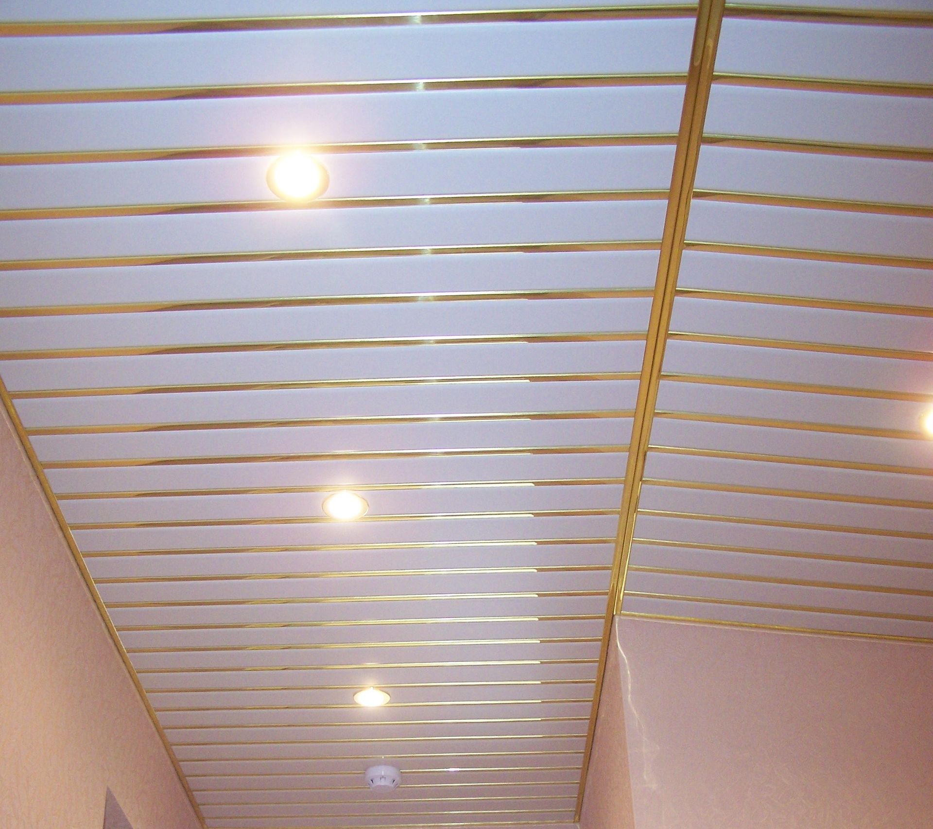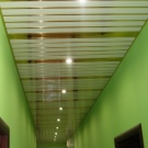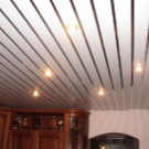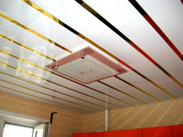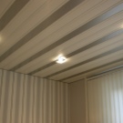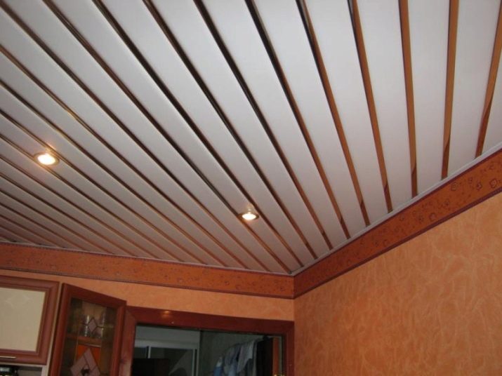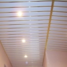 Sie können das Design der Decke mit verschiedenen Arten der Installation variieren. Zum Beispiel, gestapelt nahe beieinander Schienen, es stellt sich heraus, eine glatte monochromatische Oberfläche, gut reflektierendes Licht. Kleine Lücken zwischen den Lamellen sind leicht mit dekorativen Elementen zu decken und eine solche Decke zeichnet sich durch eine hervorragende Belüftung aus. Darüber hinaus reflektiert die Gestelldecke das Licht perfekt, daher sollte diese Funktion bei der Organisation der Beleuchtung verwendet werden.
