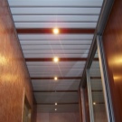 Wenn wir den Bau von abgehängten Decken betrachten, können sie geschlossen und geöffnet sein. Eine offene Konstruktion zeichnet sich durch den Einbau von Schienen in geringem Abstand zueinander aus.Im Allgemeinen beträgt der Abstand in diesem Fall 16 mm und wird daher für Räume gewählt, in denen ständig gelüftet werden muss. Die geschlossene Bauweise bildet eine feste Oberfläche mit kleinen Nähten zwischen den Platten.