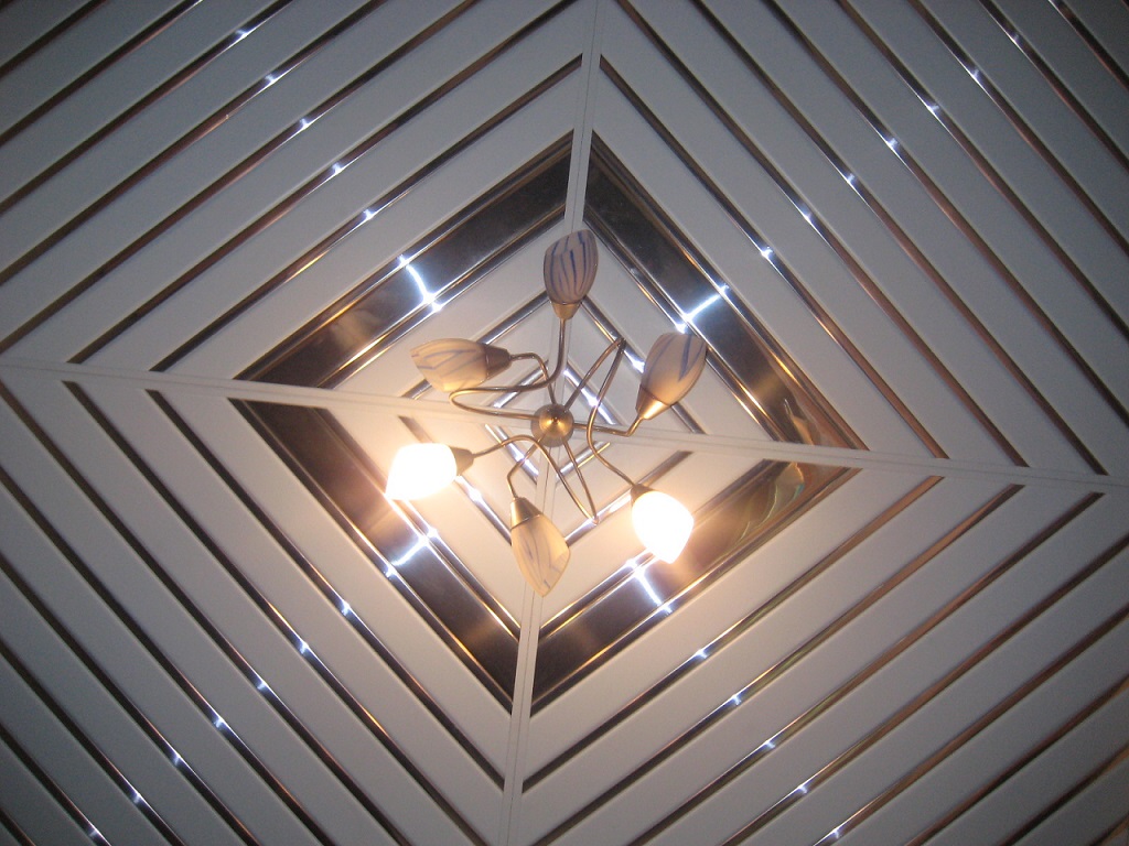 Was das Design betrifft, können die Lamellen eine Spiegel-, glänzende und matte Oberfläche jeder Farbe mit oder ohne Muster aufweisen. Spiegel und glänzende Decke erweitern optisch den Raum, schaffen den Effekt der Schwerelosigkeit und sehen in modernem Design wunderschön aus. Matte Decken eignen sich für große Zimmer mit einem reichen Dekor, in einem klassischen Stil eingerichtet.