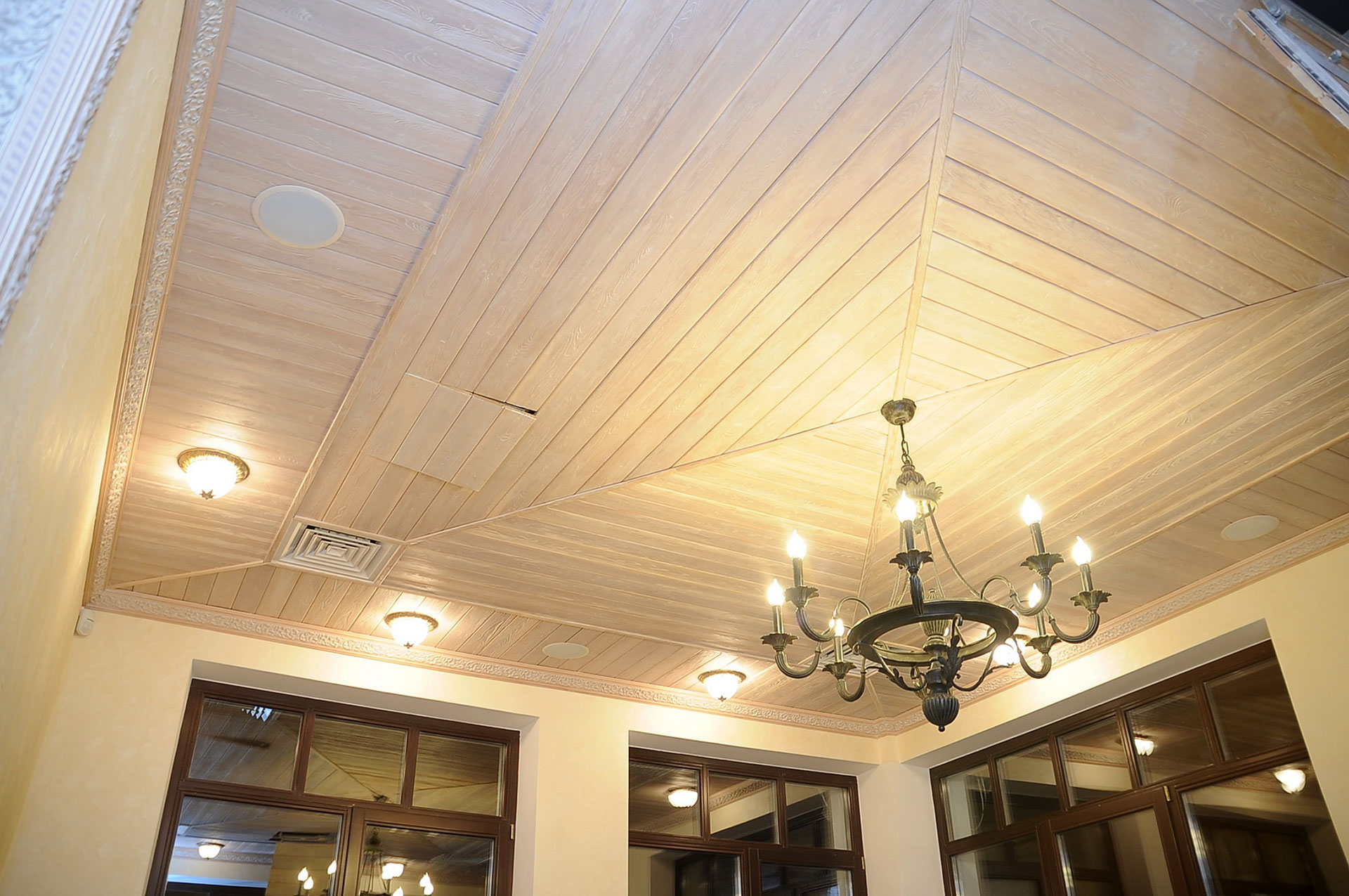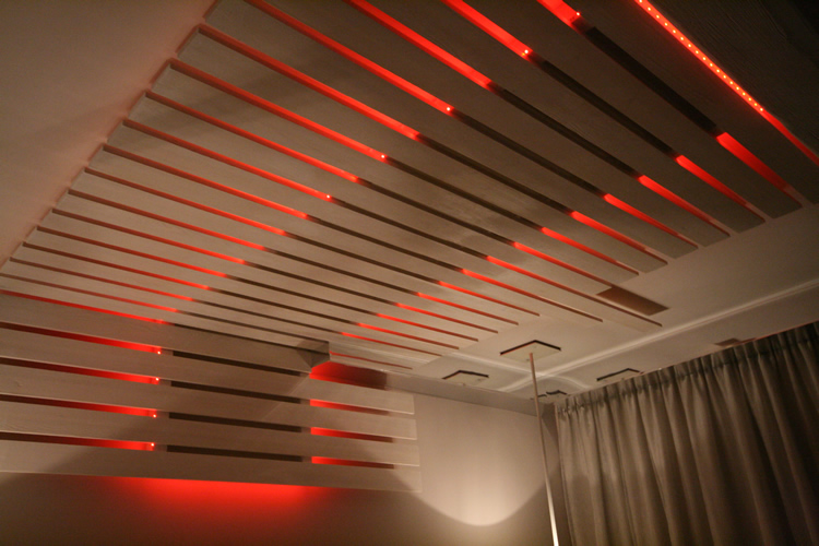 Die klassische Version der Lamellendecke ist eine einteilige Konstruktion, die aus traditionellen Lamellen gleicher Größe zusammengesetzt ist. Um zu beenden, um eine Vielzahl von angewandten Latten mit gerundeten oder geraden Rändern zu geben. Originalkompositionen werden auch mit einer Kombination von Farben und einem Satz von Streifen in Form einer Raute oder eines Dreiecks erstellt.