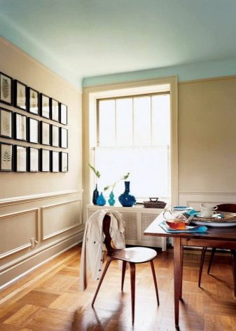 Sie können die Küchendecke mit verschiedenen Materialien bemalen, die Farbe ist besser, Sie können entscheiden, indem Sie die Eigenschaften der möglichen Sorten untersuchen: