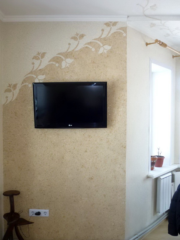 Flüssigtapete ist die erfolgreichste Version der Papierabdeckung für die Küchendecke. Sie sind vor Feuchtigkeit und Hitze geschützt, bleiben nicht hinter der Oberfläche zurück, bilden keine Flecken. Selbst mit dem resultierenden Defekt ist es leicht, es auf einer kleinen Fläche mit einer neuen Schicht zu bedecken. Es gibt verschiedene Arten von Farben und Texturen in Form einer trockenen Mischung, die vor Ort mit Wasser verdünnt, bis zu einer homogenen Masse umgerührt und nach mehrstündigem Aufbewahren (die Zeitgrenze für eine bestimmte Sorte ist auf der Verpackung angegeben) mit einem Spatel auf die nivellierte und grundierte Oberfläche aufgetragen wird. Von den Nachteilen dieser Art der Endbearbeitung können nur die hohen Kosten der Rohmaterialien festgestellt werden.