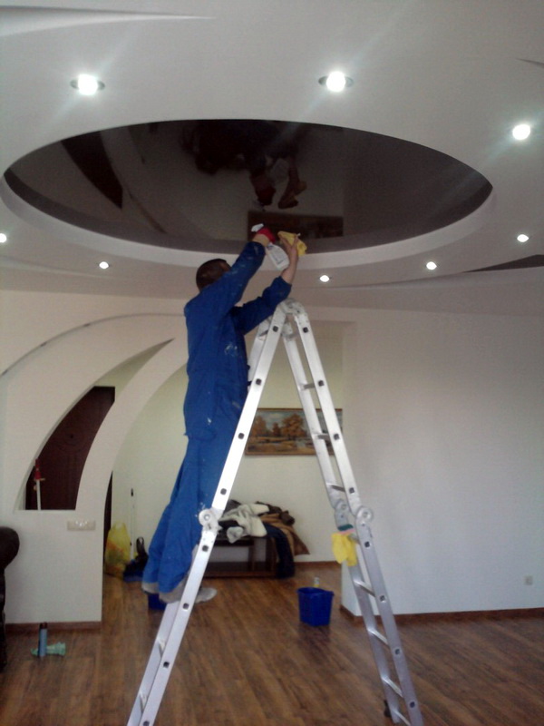 - Installation und Material für diese Art von Decke ist billiger als für Stretch.