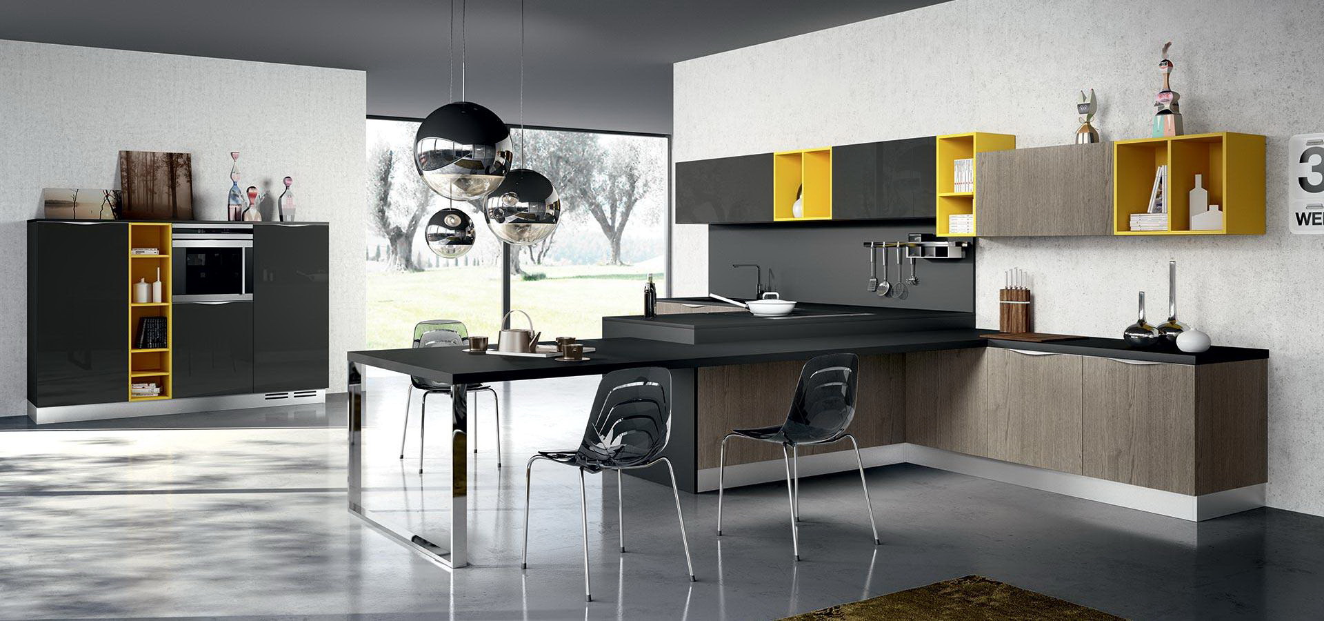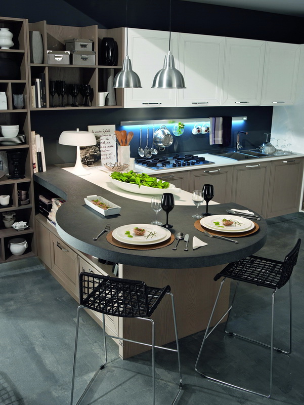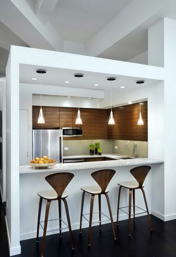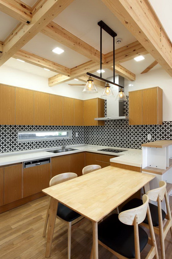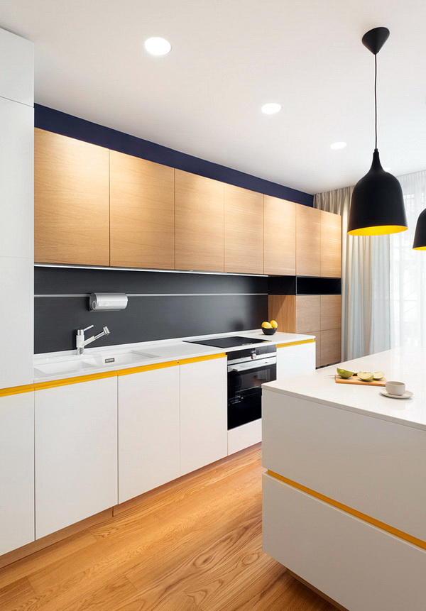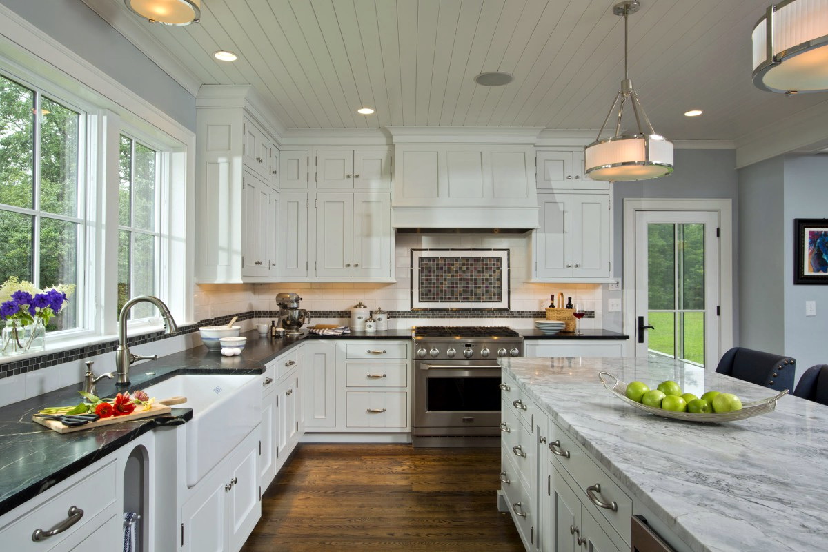 Moderne Renovierung in der Küche umfasst folgende Optionen für die Fertigstellung der Decke: