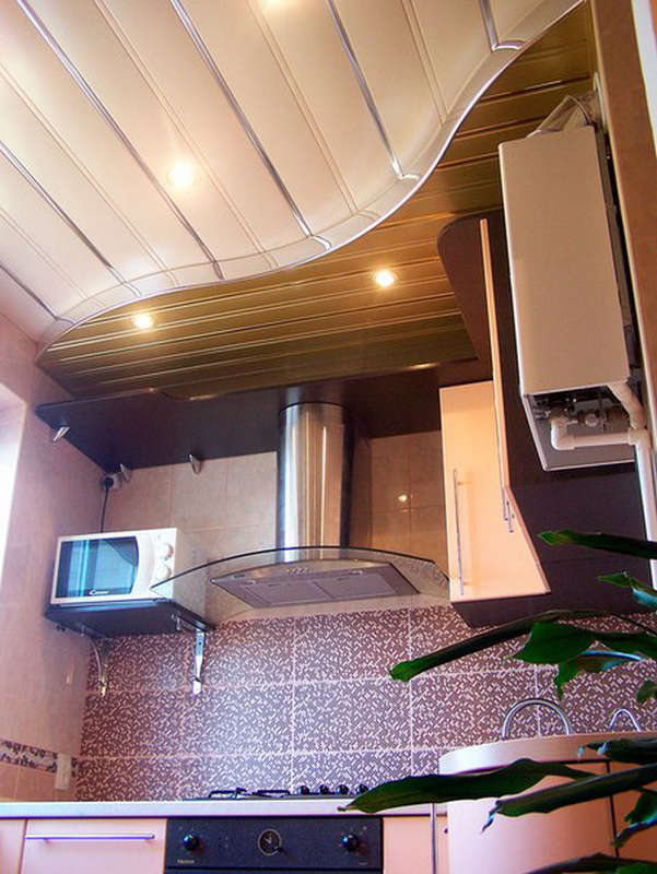 Reiki kann eine gebogene Form haben, die Ihnen erlaubt, ein gewelltes Relief der Decke in der Küche zu machen.